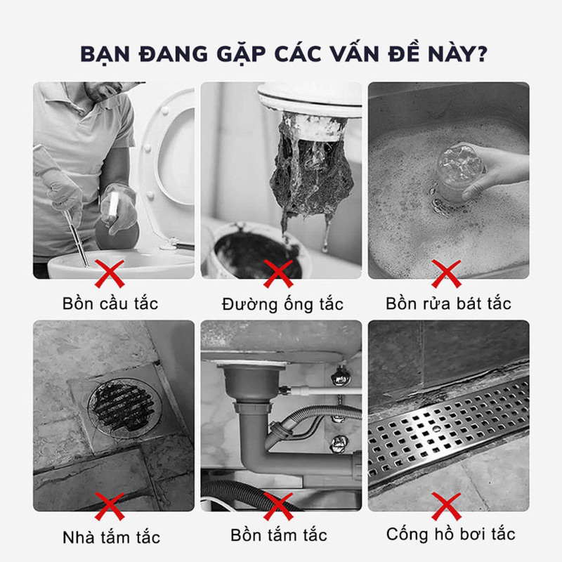 - Phân hủy các chất hữu cơ gây tắc nghẽn như tóc, rác, dầu mỡ…